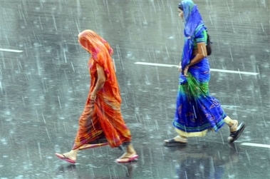 Indian women walk in the rain during a sudden downpour in Hyderabad, India, Wednesday, June 13, 2007. Severe monsoon weather which devastated Bangladesh extended its grip over South Asia on Wednesday, killing a dozen people and disrupting transport in eastern India, according to a news report. (AP Photo/Mahesh Kumar A)